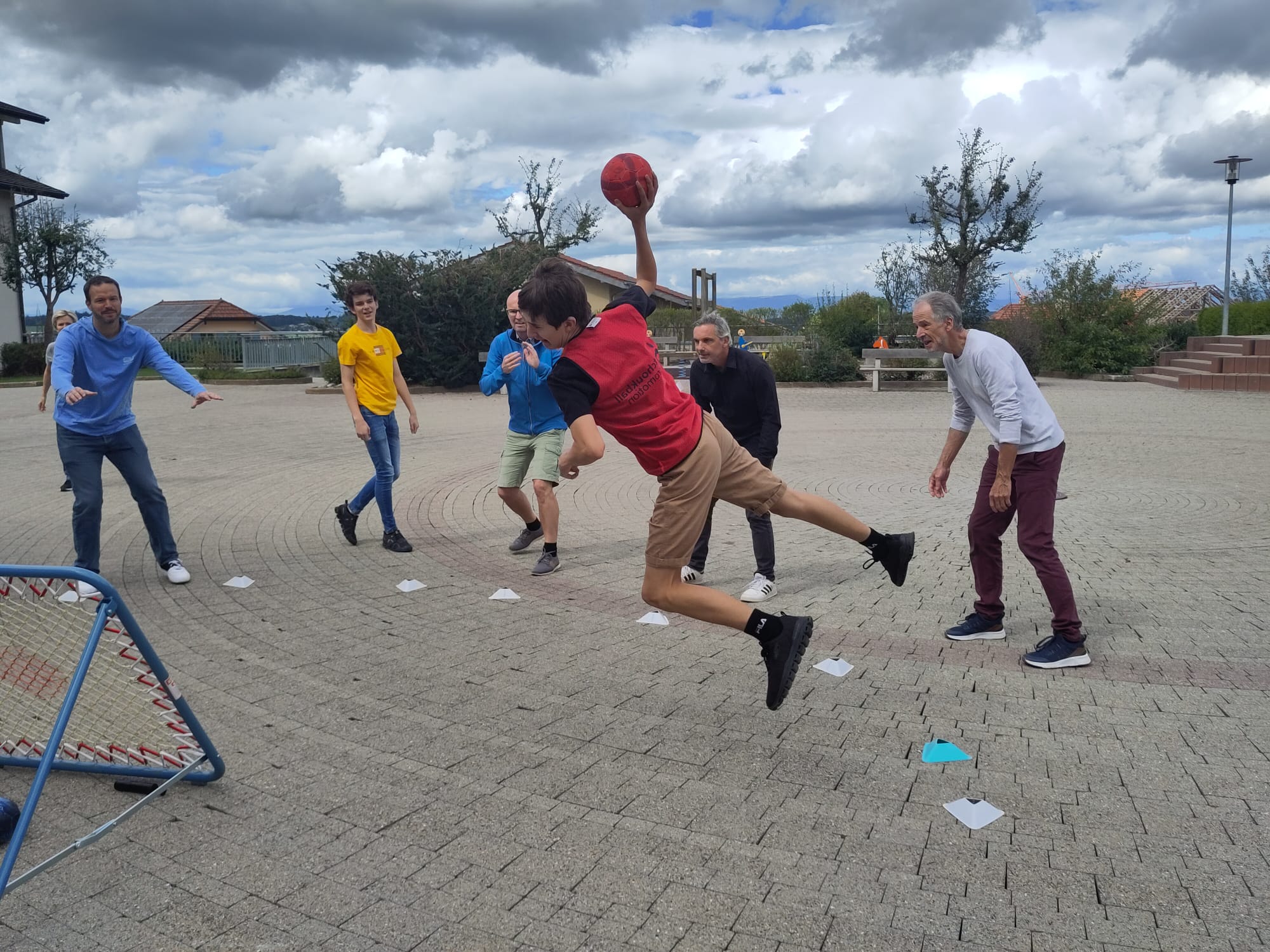 Accompagnés de leurs familles et de plusieurs membres du Tchoukball Club Fribourg et Tchouk’Bulle, les champions ont offerts une petite démonstration de leur sport.