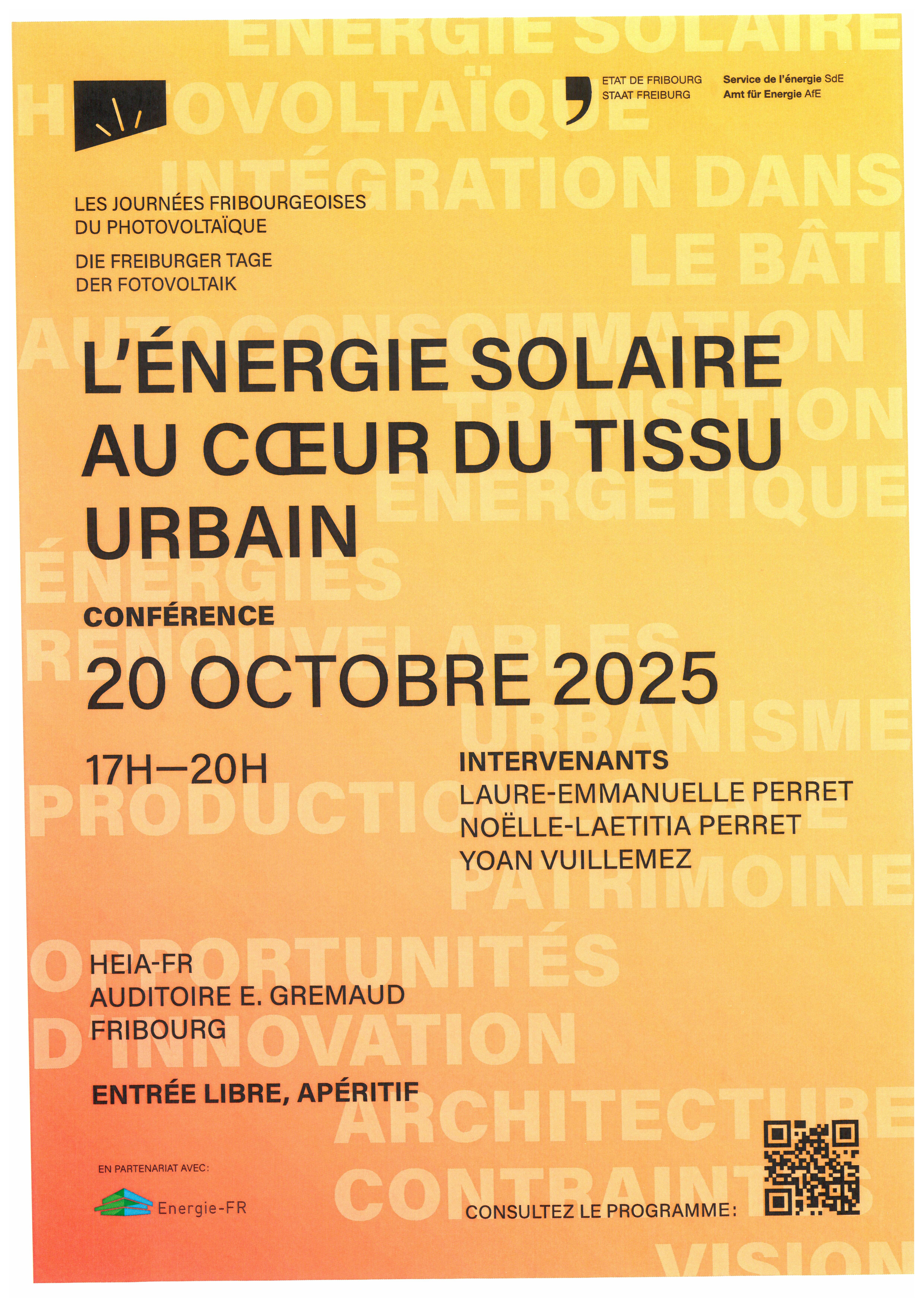 20 octobre 2025 Les journées fribourgeoises du photovoltaïque Conférence : L'énergie solaire au cœur du tissu urbain Partager